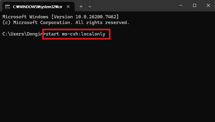 start ms-cxh:localonly